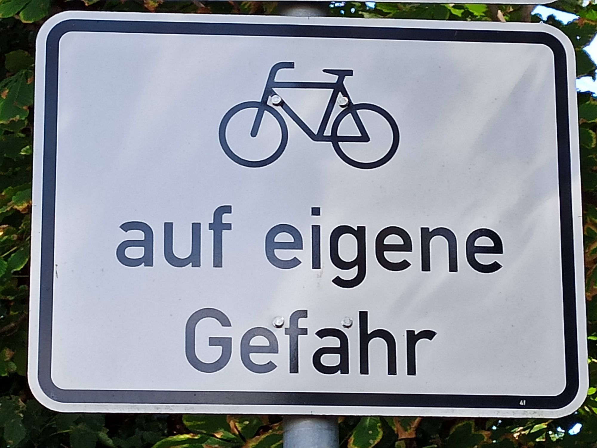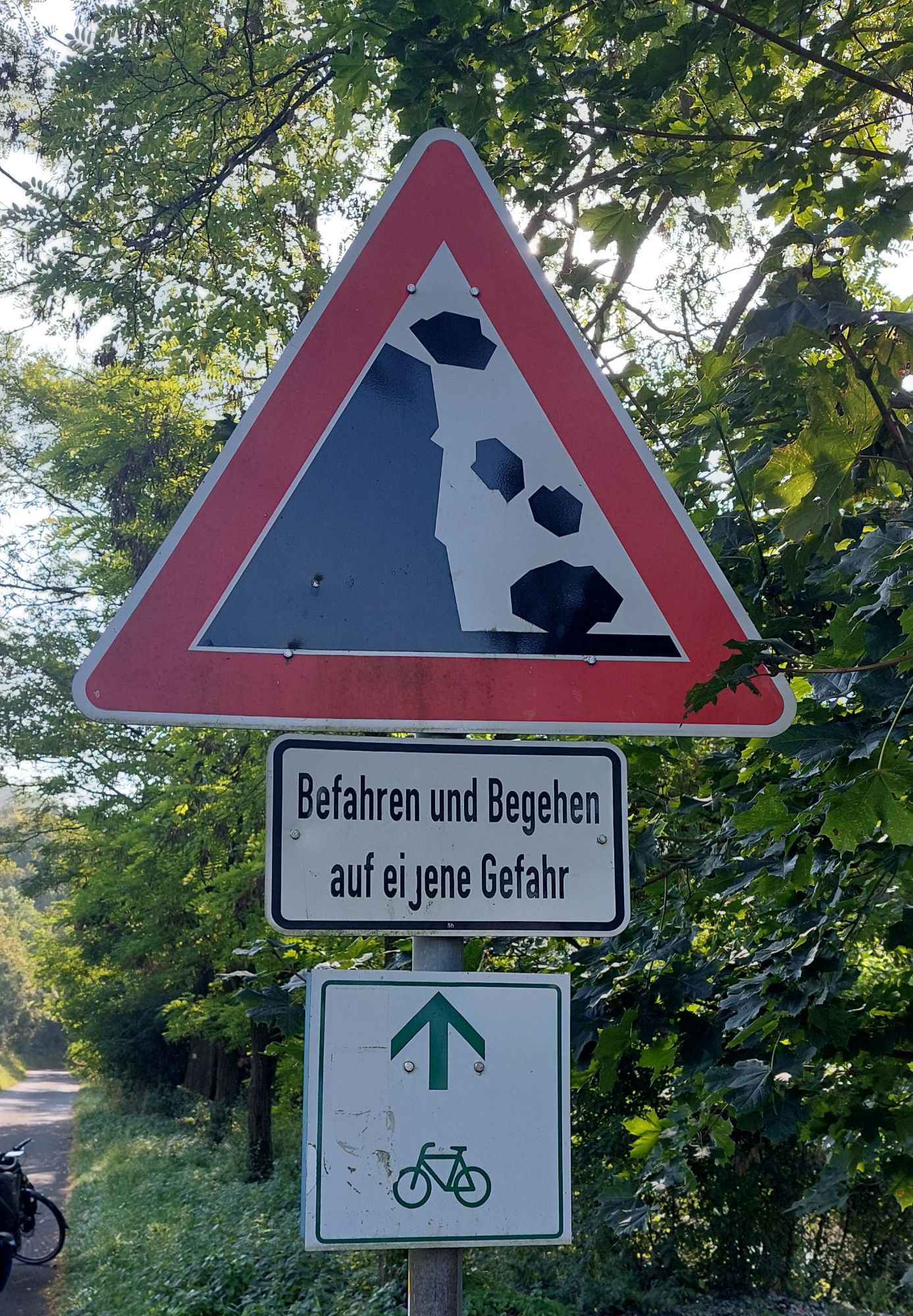 Ondertussen wordt ons duidelijk dat fietsen in Duitsland niet licht moet worden opgevat! Voortdurend staan we bloot aan een breed spectrum van serieus te nemen gevaren. Hieronder een overzicht van wat we al niet aan levensbedreigende situaties zijn tegengekomen.
