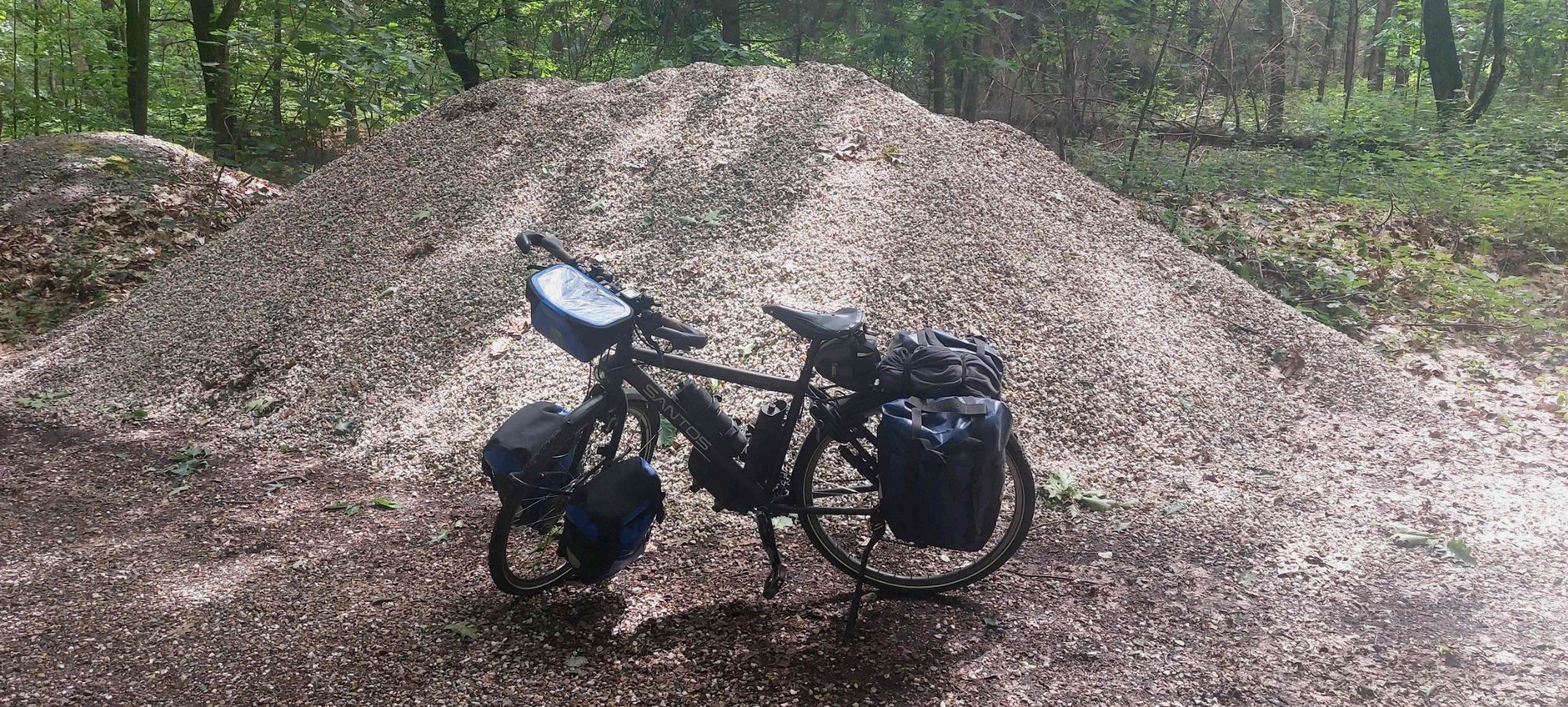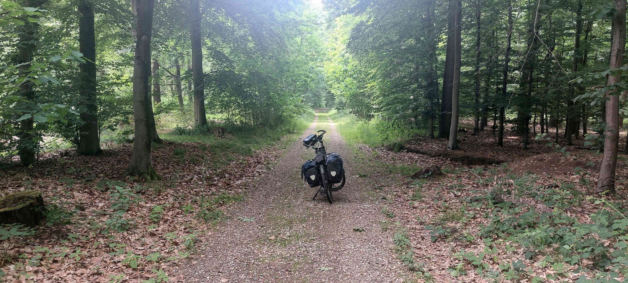 De gravelroute leidt me door een fraai bos waar inderdaad meer dan genoeg gravel ligt.