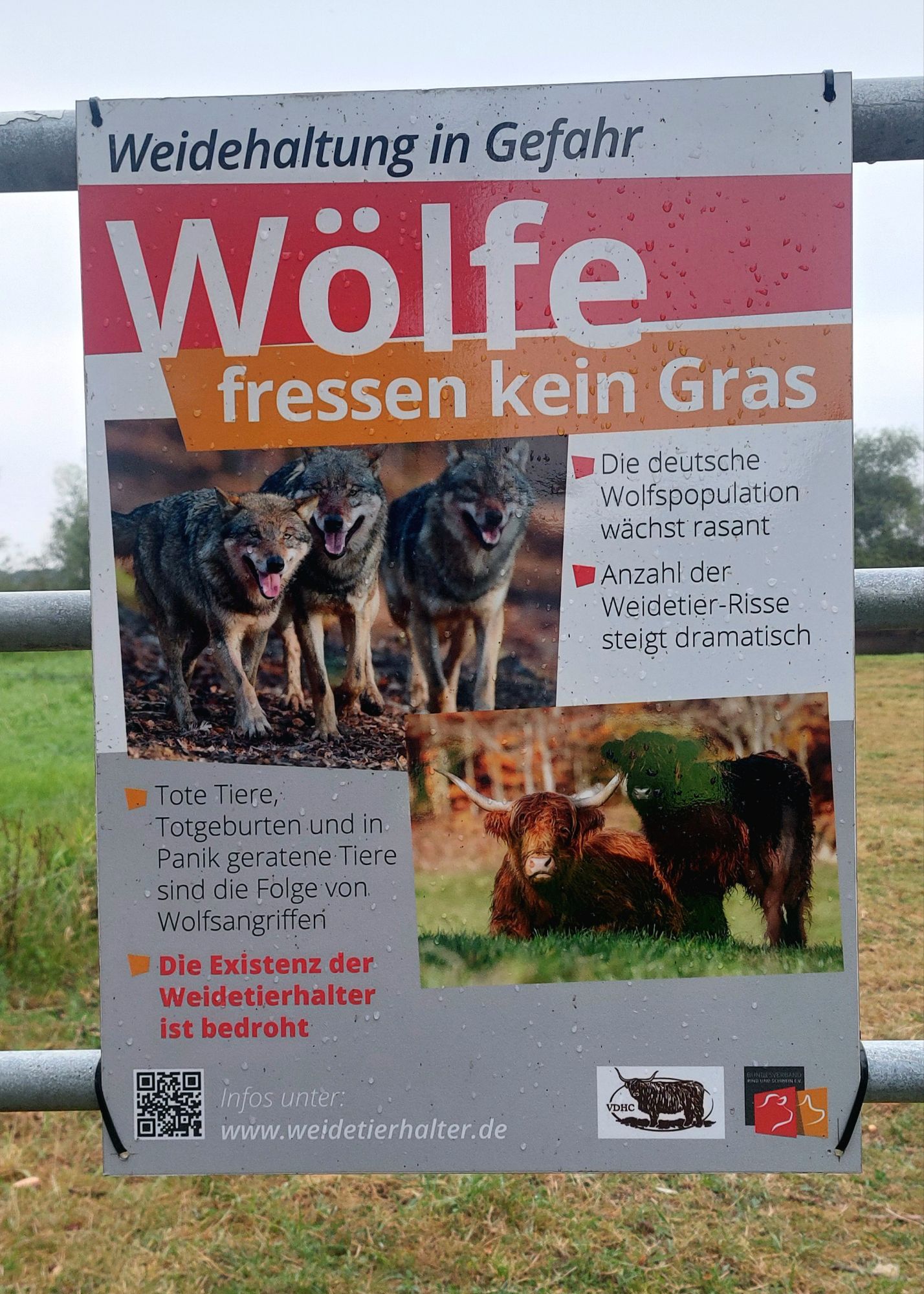 Ondertussen zorgt ook hier de wolf voor verdeeldheid. Het ene bord waarschuwt er voor, het ander wil je ze laten beleven.