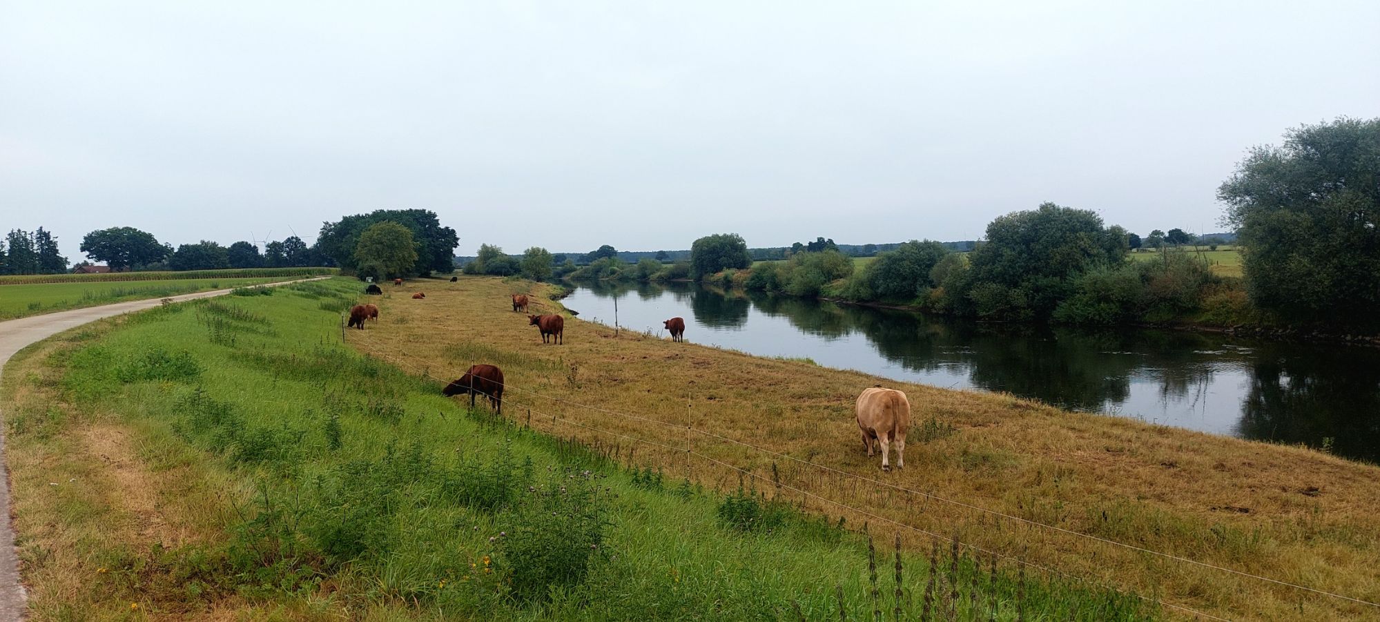 Ik rijd verder tot aan de samenvoeging van de Aller en de Weser, die helaas per fiets niet bereikbaar is, zodat jullie het nu met een plaatje van alleen de Weser moeten doen.