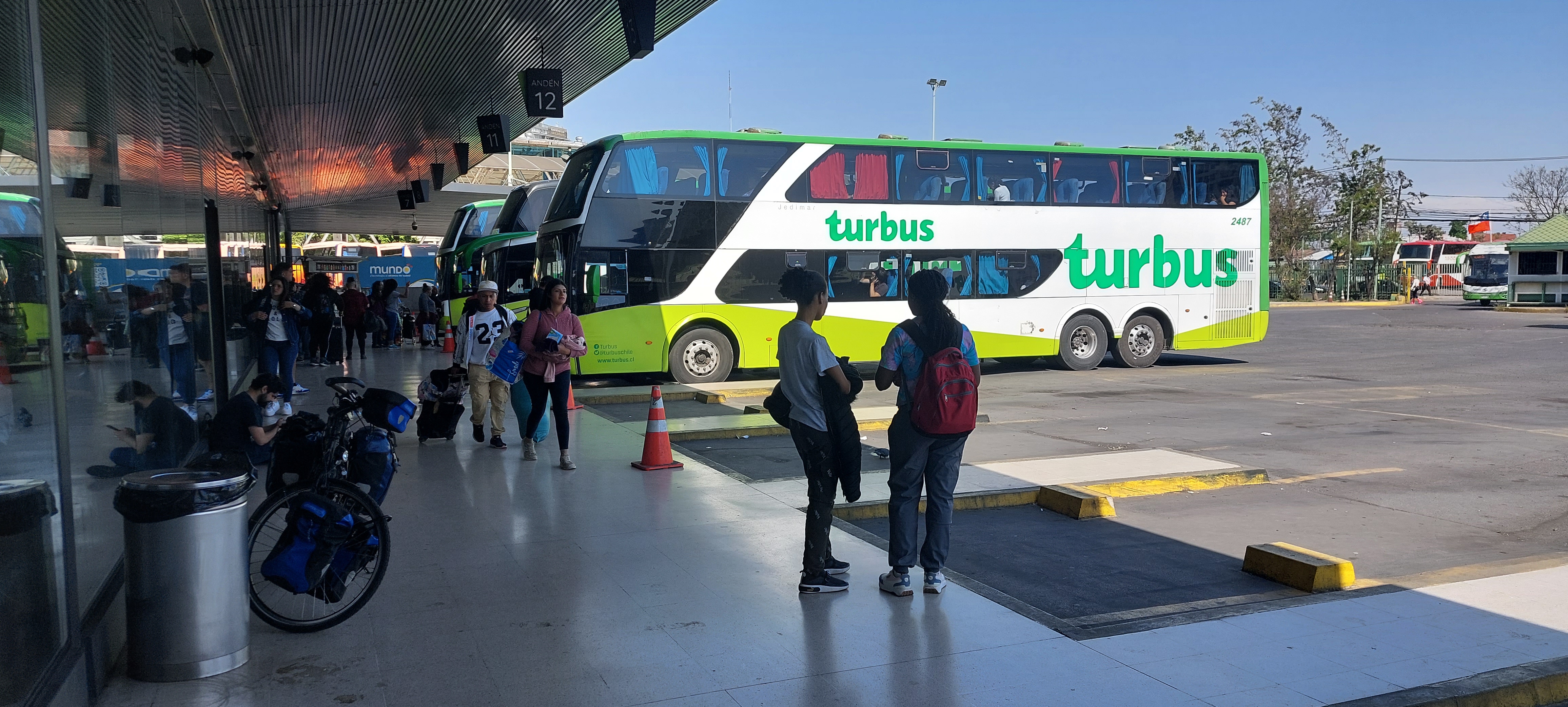 Aan het eind van de middag fiets ik naar het busstation. Ook om te fietsen is Santiago niet mijn favoriete stad. In de kleinere straten liggen nog veel kinderhoofdjes, en veel in onbruik geraakte tramrails. Op de grote doorgaande boulevards fiets ik eerst over de busbaan aan de rechterzijde van de zeer drukke weg. Dit vereist wel enige assertiviteit, en tot mijn opluchting zie ik even later dat er in de middenberm een fietspad is aangelegd, wat mijn kans op overleven aanzienlijk vergroot.