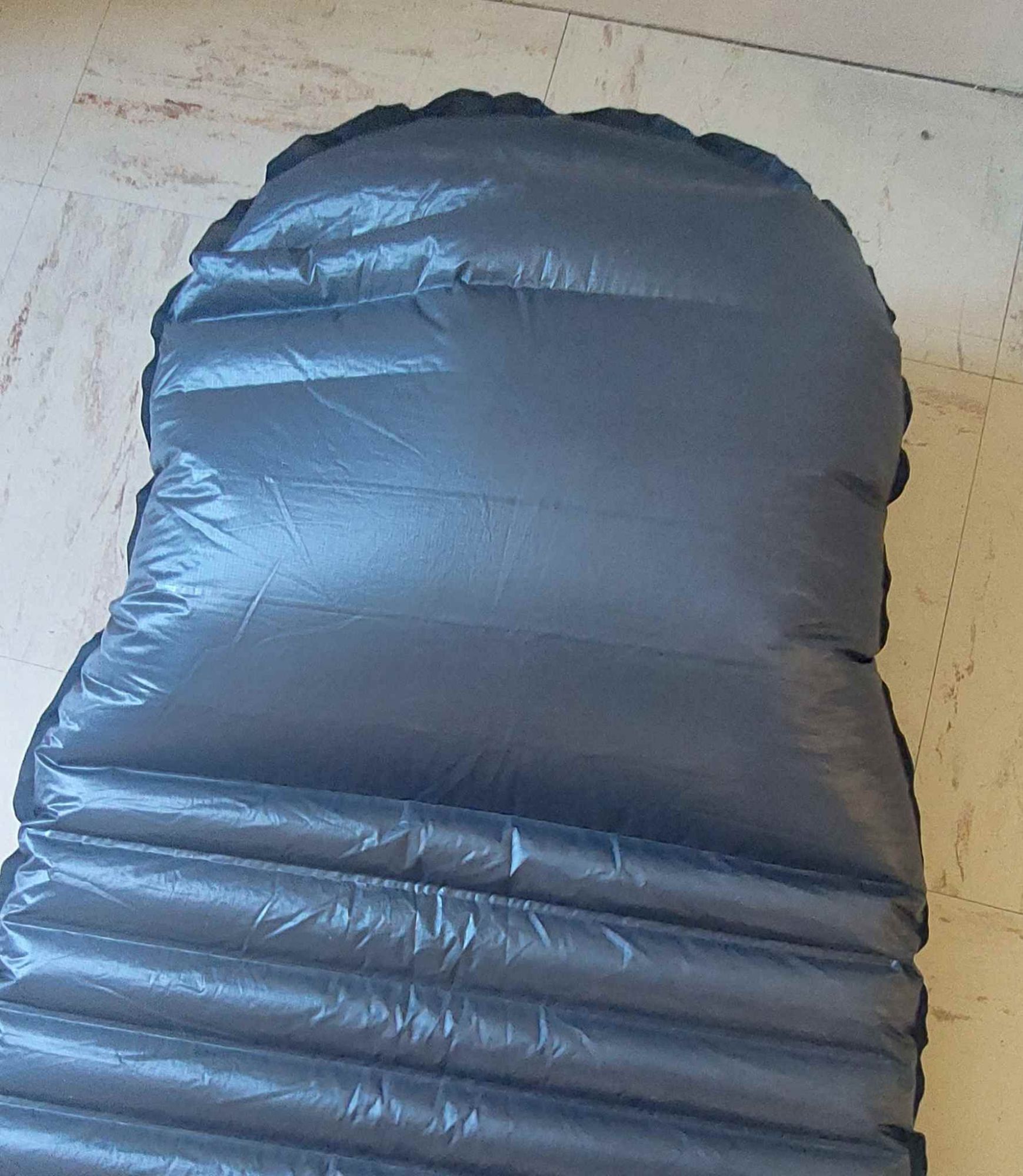 Er klapt nog meer uit elkaar, namelijk mijn slaapmatje. Een paar dagen geleden hadden al wat lamellen los gelaten bij het hoofdeinde, en nu is het voeteneind aan de beurt. Niet echt een goed begin van de dag!
